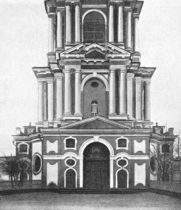 Однако в те годы удалось возвести только два яруса: нижний арочный проезд – Святые врата, и второй этаж, тот самый, где должна была разместиться церковь; после чего строительство на долгие годы было заморожено. Оно возобновилось в 1782 году, когда по настоятельному ходатайству архимандрита Иоасафа (Маслова) (настоятеля в 1779–1785 годах) из государственной казны на завершение колокольни монастырю было выделено 20 000 руб. [10, с. 449–451].
