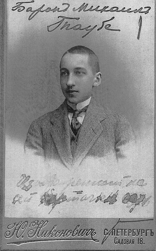 В 1912 году Михаил Таубе-младший окончил с золотой медалью столичную гимназию Карла Мая и поступил на юридический факультет Санкт-Петербургского университета, где много лет преподавал двоюродный брат Михаила Фердинандовича, видный юрист, дипломат и государственный деятель Михаил Александрович Таубе. Через три года, из-за начавшейся войны, университет пришлось покинуть. Весной 1915 года Михаил поступил на ускоренные артиллерийские курсы, по окончании которых в феврале 1916 года был произведен в офицеры и отправлен на фронт. Летом 1917-го он был тяжело ранен и лечился в госпитале в Петрограде, после чего ненадолго смог продолжить учебу в университете.