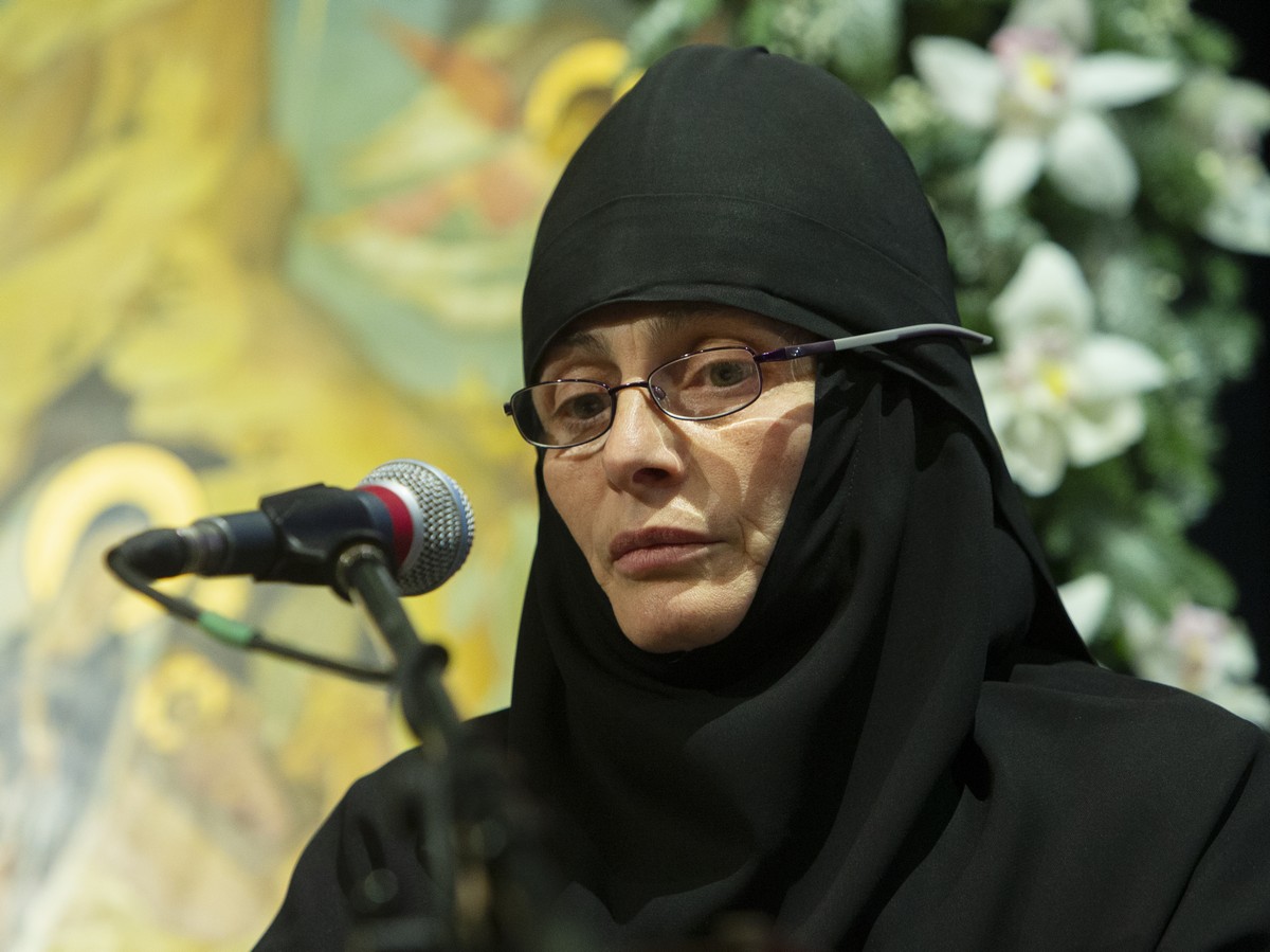 Игумения Сергия (Конкова), настоятельница Свято-Троицкого Серафимо-Дивеевского монастыря, обладающая огромным опытом воспитания уже не одного поколения монашествующих, рассказала о богослужебной и молитвенной практике Дивеевской обители, отметив, что неукоснительное следование уставным правилам, постоянное упражнение в этом прививает и правильное отношение к послушанию.
