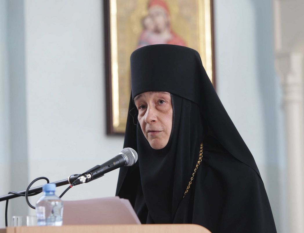 Игумения Илариона (Феоктистова), настоятельница Константино-Еленинского женского монастыря Санкт-Петербургской епархии в докладе «Создание условий для возможности келейной молитвы в монастыре» сделала, как сказала сама матушка, попытку системно изложить названную проблему. Игумения Илариона предложила разграничить понятия монашеского устава – как единого общецерковного монашеского предания, и монастырского устава – как свода принятых правил и порядков каждого конкретного монастыря. Докладчица очень подробно, с глубоким богословским проникновением в суть вопроса изложила смысл и значение келейной молитвы в отношении единого монашеского устава, подчеркнув, в первую очередь, определение данной молитвы как личного молитвенного труда монаха, неразрывно связанного с литургическим богослужением и послушаниями. Если плоть устава – внешние формы служения Богу, то душа его – непрестанная внутренняя молитва. Цель келейной молитвы – достижение чистой, свободной от помыслов, внутренней молитвы. Это личностное проявление человека в отношении к Богу, вследствие чего келейная молитва не может быть упразднена или заменена другими видами монастырского богослужения.