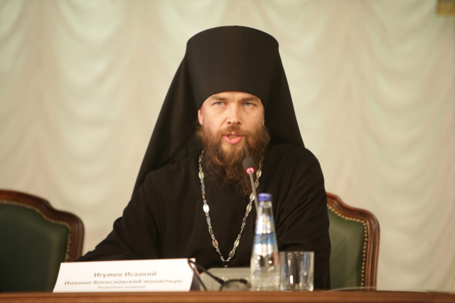 Настоятель Иоанно-Богословского монастыря в селе Пощупове Рязанской епархии игумен Исаакий (Иванов) озаглавил свое выступление «Трудности и ошибки в молитвенном делании». В соответствии с заявленной темой отец Исаакий  посвятил большую часть доклада практическим моментам и конкретным проблемам, с которыми приходится иметь дело руководителю монашеского братства. Интересны были его рассуждения о том, как по-разному содействуют внутренней молитве те или иные послушания. Благотворной оказывается такая монастырская практика, когда со временем для каждого насельника выбирается определенный круг послушаний, более способствующий его духовному развитию и углублению молитвы. При этом сетования на «неподходящие условия» для молитвы обычно не имеют под собой достаточных оснований, заметил игумен Исаакий. Монаху нужно с самого начала вооружиться твердым намерением, самоотвержением и решимостью бороться со страстями. Тогда всем известный период отступления первоначальной «призывающей благодати» и ослабления в ревности к молитве он сможет пройти с наименьшими потерями. Печальные случаи не сложившихся монашеских судеб, которые тоже описал отец игумен, очень часто бывают связаны с тем, что внешне ревностная молитва не соединена со вниманием, благоговением перед Богом и покаянием, а также смирением в принятии наставлений духовников, священства и опытных братий.