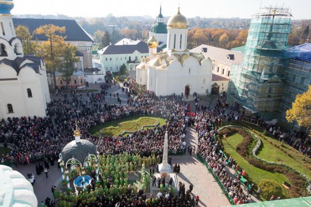 Когда я увидел план мероприятий Собрания, то удивился тому, что всенощное бдение должно состояться в Троицком соборе. Ведь, казалось, привычнее для всех нас в этот день молиться в Успенском. Но неожиданно меня потрясла мысль, что игуменов и игумений собирают на молитву в Троицкий, где будет служить Святейший Патриарх и где находятся мощи преподобного Сергия. Именно там, у мощей Игумена Земли Русской, Патриарх помажет всех игуменов и игумений, заглянет им в глаза, в души... Так и было. Совместная молитва, несомненно, стала стержнем Собрания. В этот день рядом с ракой Преподобного вокруг Предстоятеля собрались его верные чада, и вместе мы пережили чувство духовного единства. Кто-то сказал, что на праздник преподобного Сергия «Лавра стала черной» − такого количества игуменов и игумений никогда еще не бывало здесь одновременно. Из самых отдаленных монастырей они прибыли, чтобы вместе соборно помолиться в «большой келье» преподобного Сергия, основателя русского монашества.