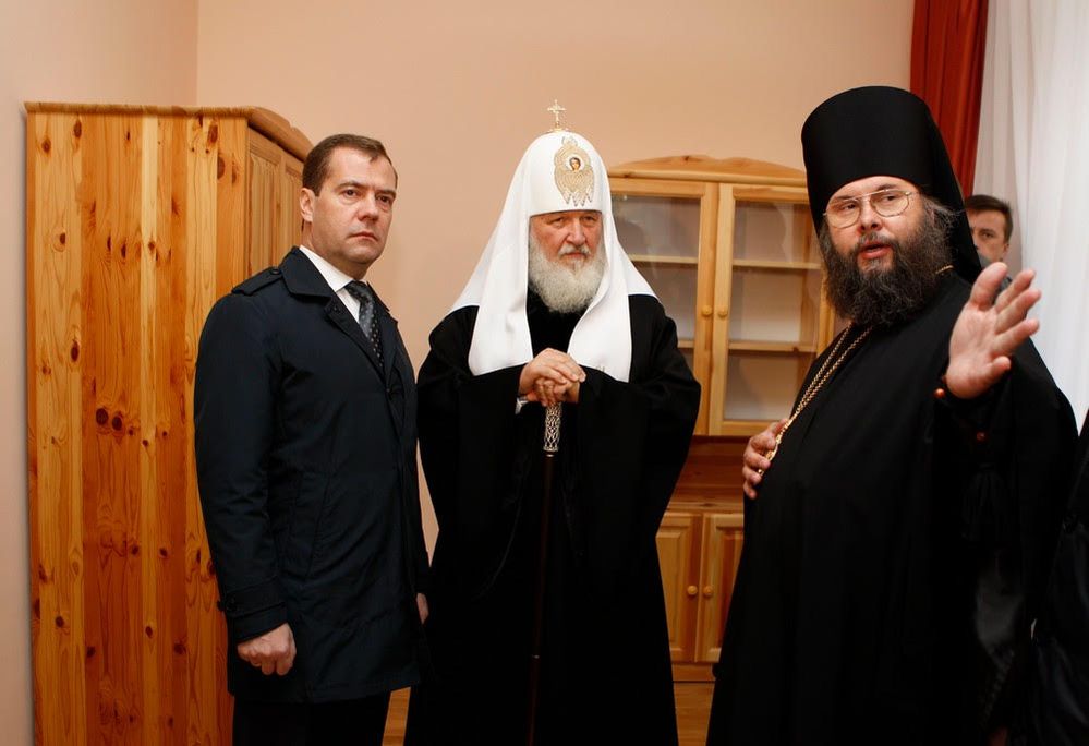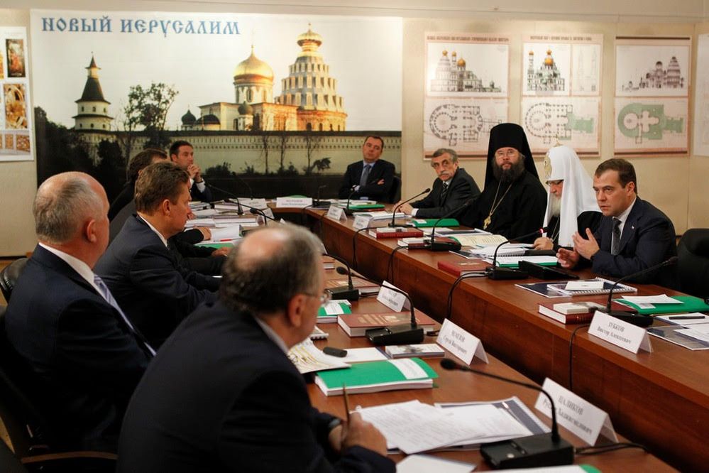 Дмитрий Анатольевич, идя на президентские выборы в 2008 году, дал обет Богу, что если он их выиграет, то восстановит одну из святынь. И когда он увидел, что выигрывает в первом туре, то поехал к Патриарху Алексию и, рассказав ему о данном обещании, попросил благословения и совета. Патриарх, не задумываясь, указал на нашу обитель. Ново-Иерусалимский монастырь – великая святыня. Но в одиночку ее никому не поднять, ни самой Церкви, ни крупному бизнесмену или даже корпорации. Усилия нужно объединять. У Патриарха Алексия душа болела о нашей обители. Разумеется, когда появился шанс восстановить монастырь, он им воспользовался. Был создан Попечительский совет Благотворительного фонда по восстановлению Воскресенского Ново-Иерусалимского ставропигиального мужского монастыря Русской Православной Церкви. Дмитрий Анатольевич спросил, готов ли Святейший его возглавить? На что Патриарх ответил: «Только вместе с Вами». Так наш Попечительский Совет возглавили сразу два сопредседателя – Президент (ныне глава Правительства) и Патриарх. Это уникальный случай.