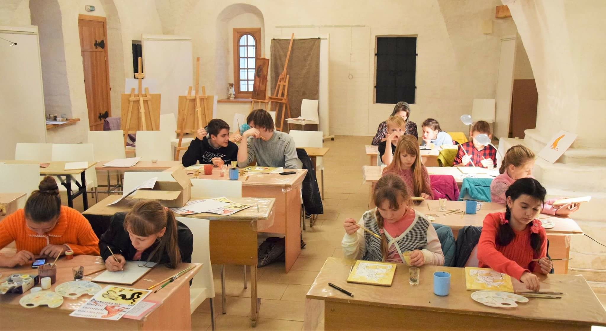 Но и сейчас ребята приходят в монастырь иногда не в воскресный день, когда проходят наши занятия, а в будни, просто так, небольшими группами, навестить меня после школьных уроков. Я в это время делаю росписи в монастырской трапезной, и дети имеют возможность посмотреть, как создается настенная композиция, помогают, держат палитру, наблюдают за процессом, задают вопросы. Я рассказываю им, как надо смешивать краску и проводить линии, а потом прекращаю работу, и мы идем пить чай. А иногда мы идем в храм, чтобы поставить свечи, и только потом – к столу. Время от времени я доверяю ребятам нарисовать какие-нибудь простые узоры на росписях не потому, что не успеваю, а чтобы у них остались приятные воспоминания, что они поучаствовали в важном деле. Это всё и есть, наверное, самые задушевные моменты в нашем изучении иконописи.