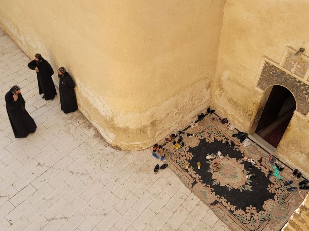Еще одной особенностью можно назвать тот факт, что в монастырях Египта отношение к Иисусовой молитве несколько отличается от нашего. В большинстве обителей к ней относятся, скорее, как к способу сохранить ум от помыслов во время послушаний, Иисусова молитва не является обязательной частью молитвенного правила. Хотя в одном из женских монастырей епископ, который его возглавляет, сказал, что в правило сестер входит от пяти до десяти тысяч молитв в день. Но мало этого. Один раз в месяц у них бывает келейный день, когда сестры молятся сугубо. И в этот день они удваивают количество всех молитв. Также сестры совершают от пятидесяти до трехсот поклонов, и это количество тоже удваивается в келейный день. Как говорят сами монахини, все послушания исполняются ими в монастыре между богослужениями. Таким образом, получается, что они живут в суточном круге.