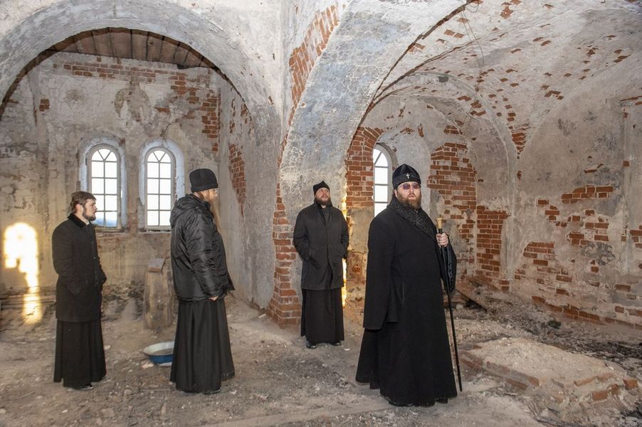 О преподобном Ниле Сорском, постриженике Кирилло-Белозерского монастыря, который увидел скитское жительство на Афоне и всей душой потянулся к нему, братия читала. Мы знали его труды, знали о его подвигах, но до своего назначения сюда я в Нило-Сорской пустыни ни разу не был. Потому что в стенах нынешнего каменного монастырского ансамбля, построенного на месте Нилова скита в XIX веке, находился психоневрологический интернат – социальное учреждение закрытого типа. Через день после своего назначения 5 декабря 2018 года вместе с игуменом Дионисием, к которому я всегда обращаюсь за помощью и советом (к тому же, добавлю, он возглавляет Епархиальную комиссию по церковному искусству) мы приехали в обитель. Пациентов интерната к тому времени распределили в другие учреждения. Первое, что бросилось в глаза, – обшарпанные стены, производившие жутковатое впечатление. Должен сказать, что все эти огромные жилые помещения, общей площадью три тысячи пятьсот квадратных метров, интернат отапливал и долгое время поддерживал в них порядок. Но в последние годы, зная, что монастырский ансамбль все-таки будет передан Церкви, за порядком перестали следить. Представляете, здесь проживало 180 инвалидов, да плюс немалый по численности персонал был, а теперь нас четверо – я, настоятель; иеродиакон Галактион, несущий послушание эконома; послушник Сергий – трапезник, послушник Александр – певчий.
