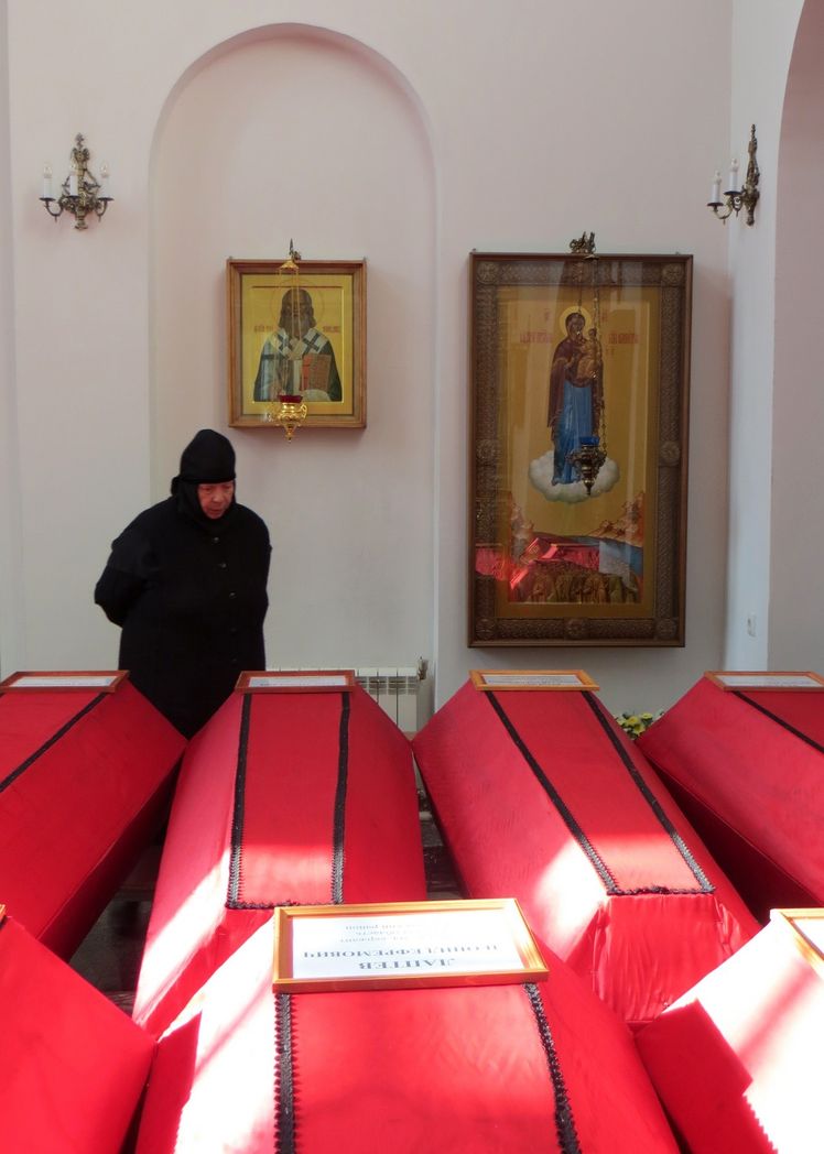 Да, это, можно сказать, свежие раны. Был такой случай: 18 сентября 2018 года после отпевания и погребения останков 459 воинов в братских могилах на Богородицком поле в наш храм на обратном пути зашли двое военных из Вязьмы, офицеры. Они сказали, что вчера в Сирии был сбит разведывательный самолет ИЛ-20 и погибли все, кто находился на борту. Среди погибших – военнослужащие из Вязьмы. Офицеры спросили: можно ли, чтобы об их земляках, выполнявших свой воинский долг, молились здесь в храме? Старший священник монастыря иеромонах Даниил (Сычёв) достал синодик для поминовения воинов и записал имена. Вообще сразу после открытия обители нам стало поступать много писем от родственников, точно знавших, что в этой местности, на этой земле, погибли их близкие. Потом стали присылать письма родственники тех, кто сражался с фашистами на разных фронтах и сложил голову за Отечество. Затем в нашей почте появились письма от родителей, жен, сестер, братьев, детей наших современников, погибших в ходе локальных вооруженных конфликтов. Мы решили, что так как наш монастырь единственный в своем роде, будем поминать всех. В обители подвизается семь сестер. (Еще когда я ездила к отцу Николаю Гурьянову на остров Залит, он мне говорил: «Не бойся малое стадо! Всё будет!») Понятно, что для «малого стада» было бы неподъемно поминать столько имен погибших воинов. Но каждому, кто к нам приезжает, мы даем прочитать страницу синодика с именами. Рассказываем всем о монастыре и о трагизме тех событий. Везем паломников к мемориальному комплексу «Богородицкое поле», где находятся захоронения останков солдат, найденных поисковиками Центра «Долг», которые каждый год продолжают исследовать эти леса и овраги, ручьи и болота, метр за метром. На «Богородицком поле» есть одноименный музей, он тоже производит сильное впечатление. И всё это вместе – духовная часть и историческая, поминовение имен и оживающие страницы трагического прошлого – благотворно влияет на человека.
