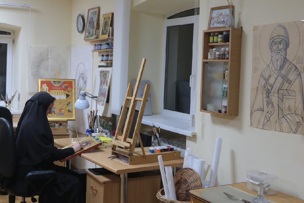 У нас есть небольшая швейная мастерская, иконописная. Есть заказы на иконы, но и для своего храма все иконы мы писали сами. Понемногу стали заниматься мозаикой, но пока это дело идет сложно. Также монастырь принимает паломников. Заканчивается строительство нового корпуса, на первом этаже которого можно будет размещать девочек, приезжающих к нам на лето потрудиться и помолиться. На втором этаже этого здания уже действует небольшой домовый храм в честь Пресвятой Богородицы Игумении Горы Афонской. Не так давно его освятил архиепископ Феофилакт, и раз в неделю там совершаются ночные службы.