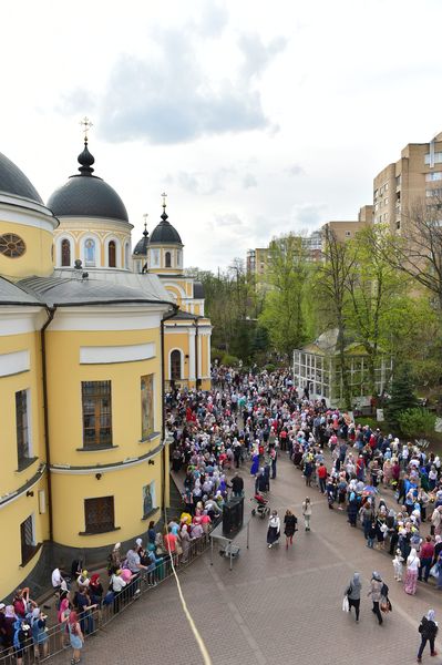 Со всех концов России, из ближнего и дальнего зарубежья люди стекаются в монастырь, едут с близкими и родными, целыми автобусами… В помощь приезжают сестры со всех наших подворий, трудятся в несколько смен – в церкви, в трапезной, за свечным ящиком. Ведь у нас открыты все 4 храма: Воскресенский, Покровский 2 этаж, храм Петра и Февронии. 1 этаж Покровского храма, где почивают мощи блаженной Матроны, открыт всю ночь. Ранняя Литургия совершается ночью, в приделе святой Матроны Московской (это правый придел Воскресенского храма), а после нее, у мощей служится молебен блаженной старице.