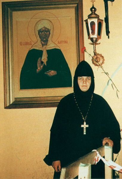 Выдержать такую нагрузку непросто, но всё по молитвам блаженной Матронушки, мы ее так любим! Ведь она всю свою жизнь без остатка отдавала людям, молитве к Богу за народ наш. И нас укрепляет в монашеском делании. Я так полюбила Матронушку, что ради нее я была готова всё терпеть. Когда еще не было обретения мощей, монастырь с огромным трудом только-только восстанавливался, я молилась ей, чтобы она «пришла» к нам своими святыми мощами. Матронушка тогда явилась мне во сне, осмотрела все владения монастыря, всю территорию, храмы и сказала очень сочувственно, жалея: «А ты выдержишь такое количество народа, которое я буду принимать?» Она повторила это три раза. Я встала на колени и просила ее: «Матронушка, ты только приди к нам, я все выдержу!» Мы стояли и разговаривали на том месте, где сейчас висит икона Матронушки на улице.