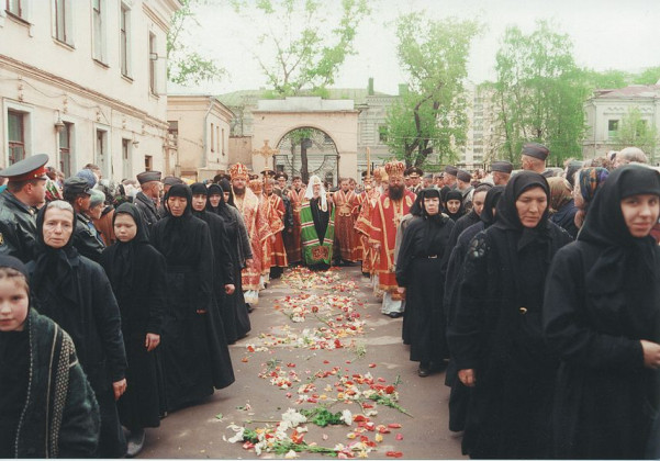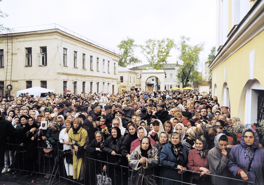 Народу было очень много, хотя и интернета тогда не было, и специальных объявлений мы не давали, а люди сами как-то друг другу рассказали, что будет канонизация блаженной Матроны. Накануне ночью мы так же, как и сейчас, не закрывали монастырь, отслужили раннюю Литургию на 1-м этаже Покровского храма, а затем – последнюю литию по старице Матроне. Большинство богомольцев так и осталось в монастыре до утра, чтобы участвовать в торжестве ее прославления. Сестры дежурили на телефонах, звонки были беспрерывно.