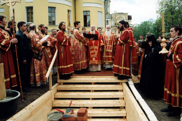 После окончания Литургии состоялась закладка камня в основание монастырской колокольни, взорванной в 1926 году.