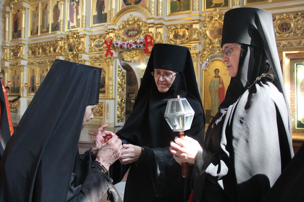Люди регулярно приезжают в обитель за святой водой и не только с малыми сосудами, но и с бочками, и с канистрами. Возле святого источника стоит стенд – пройти мимо, не заинтересовавшись житием нашего небесного покровителя, невозможно. Также о святителе можно узнать из небольших листовочек в иконной лавке и, конечно, послушав рассказы насельниц монастыря, которые и сами много читали, и многое почерпнули на конференциях, посвященных памяти святителя и проводившихся в нашей епархии, в Хабаровской духовной семинарии, в Троице-Сергиевой лавре. Например, мы часто вспоминаем свою поездку в ноябре 2017 года на конференцию, посвященную 220-летию со дня рождения святителя Иннокентия Московского и 40-летию его канонизации. Проходила она в стенах Московской духовной академии. Духовник нашей обители отец Иоанн (Каплун) делал доклад на тему «Особенности пастырского служения на Дальнем Востоке России». Тема моего доклада – «Социальная деятельность монастыря, как продолжение трудов святителя Иннокентия Московского в Приамурье». Ну, а монахиня Иннокентия (Уколова) была просто участником форума, но очень внимательным и заинтересованным.