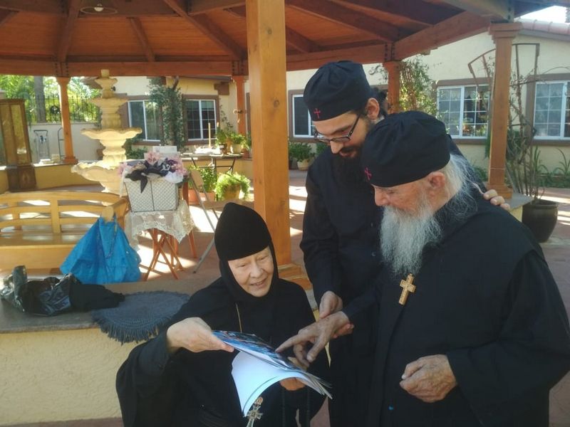 С осени прошлого года. Опыт у нас небольшой, и я даже побаиваюсь о нем рассказывать. В то же время есть благословение предыдущего правящего архиерея – владыки Феодора. А нынешний – Преосвященный епископ Феоктист сказал, что он нам в этом вопросе доверяет. И старцы нас благословили! Если рассказывать все по порядку, то начать нужно с одного памятного события, когда около десяти лет назад нам привезли мощи преподобного Иосифа Исихаста. Однажды в монастырь приехала на большом автобусе греческая делегация – игумении, монахини, священнослужители, живущие в Америке. Зашли они в храм, стали благоговейно молиться перед мощами наших святых и поразились, увидев большой образ праведного Иоанна Русского. Один из членов делегации, иеромонах Пантелеимон, воскликнул: «Вы почитаете этого святого? Я вырос у его нетленных мощей на острове Эвбея! А у вас есть его мощи?» – «Нет», – ответили мы. Гость открыл бархатный мешочек для святынь и достал оттуда частицу мощей подвижника. Спросил далее: «А у вас есть мощи святого Лазаря Четверодневного?» – «Нет». Отец Пантелеимон достал частицу мощей друга Спасителя. И добавил: «А еще я хочу подарить вам частицу мощей преподобного Иосифа Исихаста». Мы были потрясены, потому что восхищались подвигом старца-афонита, зная, что всю свою жизнь он посвятил деланию Иисусовой молитвы. Но то, что он будет к нам так близок, и в голову не приходило. Как на многих монашествующих в России, так и на нашу монашескую семью сильное впечатление произвела книга «Моя жизнь со старцем Иосифом». А когда мы узнали, что ее автор – старец Ефрем Филофейский – жив и вообще-то доступен, только надо перелететь через океан и попасть в американский штат Аризона, то загорелись желанием побывать у его ног. Господь наше желание услышал и осуществил чудесным образом в 2016 году.