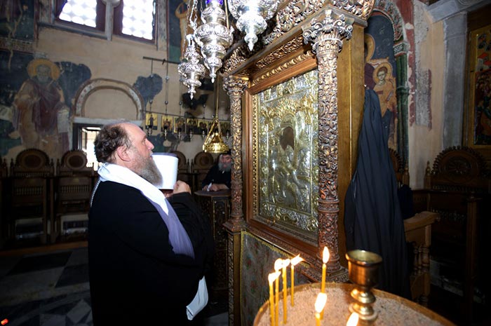 Вместе с тем текущий год стал для Пантелеимонова монастыря временем непростого духовного испытания. Незадолго до престольного праздника, 4 августа, отошел в вечность игумен обители ― схиархимандрит Иеремия (Алехин). Без малого 40 лет покойный старец нес на своих плечах нелегкий крест игуменского служения, проявляя всестороннюю заботу о насельниках монастыря. Для братии он был настоящим отцом и добрым пастырем. До самой своей блаженной кончины он кроме управления обителью, несмотря на столетний возраст и слабое здоровье, выполнял принятое им особое послушание ― ездил в город Фессалоники за продуктами для братских трапез. В своем соболезновании Святейший Патриарх Кирилл так сказал о почившем: «Во всех обстоятельствах он оставался ревностным служителем алтаря Господня, верным своему призванию, и монахом, всецело уповавшим на Христа». По прибытии в обитель и поклонения честной главе великомученика Пантелеимона, участники паломничества совершили заупокойную литию на месте погребения новопреставленного схиархимандрита Иеремии. Сугубые молитвы об упокоении старца-игумена в Небесных обителях возносились нами ежедневно, за каждой Божественной литургией и в литиях на его могиле.