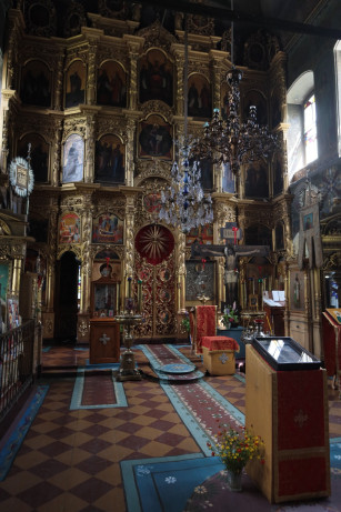 Мы когда-то жили в Москве. У меня была однокомнатная квартира с окнами на храм мученика Трифона на «Рижской». И мы искали место для мастерской. Необходимо было больше пространства, чтобы картины писать. В Москве не получилось мастерскую заиметь, и мы стали искать где-то на стороне. Как-то с нашими друзьями попали в Ярославскую область, в эти леса, и здесь я увидел этот храм. Он и тогда был действующим и вообще никогда не закрывался. Батюшка здесь был и три-четыре женщины при нем. Народ, живущий рядом, приезжал на праздники. Приехать сюда было сложно, приходилось довольно долго идти пешком по дороге, по грязи или снегу. И вот это уединенное место стало для нас убежищем от городской жизни. Церковнославянский язык мы уже знали, потому что я тогда писал картины с житиями святых, и мне надо было читать о них, мы доставали старые книги, и по ним изучили церковнославянский. Стали ходить в этот храм, жена моя, будущая матушка, стала помогать старушкам на клиросе, а батюшка, отец Иоанн Семенов, взял меня в алтарь, я ему там помогал. И потихоньку мы начали тут осваиваться. Мы были только недавно крещены. Я в 34 года крестился, нас с женой вместе дома крестили.