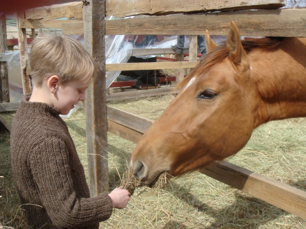 А вот животноводство стараемся развивать. Начинали в 2004 году с двух коров, Божией милостью нам пожертвованных. В 2007 году официально зарегистрировали крестьянско-фермерское хозяйство (КФХ), где я являюсь управляющим, и на сегодняшний день у нас 120 породистых коров, плюс нетель, быки, телки – в общей сложности где-то 150-160 голов крупного рогатого скота. Дважды мы получали господдержку по программе «Развитие семейных животноводческих ферм», и на полученные грантовые средства закупили молокопровод, доильную установку, танк-охладитель для молока. Изготавливаем сметану, масло, брынзу, творожные продукты, причем не только из коровьего молока, но и из козьего. Есть куры, петухи, индюки. Трудятся в скиту сельские жители. Трудятся и получают зарплату. Добавлю еще один штрих к нарисованной мной картинке: очень любят бывать здесь городские мальчишки и девчонки из воскресной школы. Приплыв сюда на пароме через реку Старая Волга, они присутствуют на Божественной литургии, а затем идут на холм к Поклонному кресту. Оттуда открывается великолепный вид на скит, на реку и окрестные просторы. Там дети могут побегать, посидеть у костра, поговорить по душам с батюшкой. Ну, и конечно, особую радость им доставляют, как тепло и образно написала Людмила Георгиевна Бухтоярова в книге, все эти рогатые, ушастые, мычащие и кукарекающие, мохнатые и пушистые обитатели Николо-Комаровского скита-подворья.