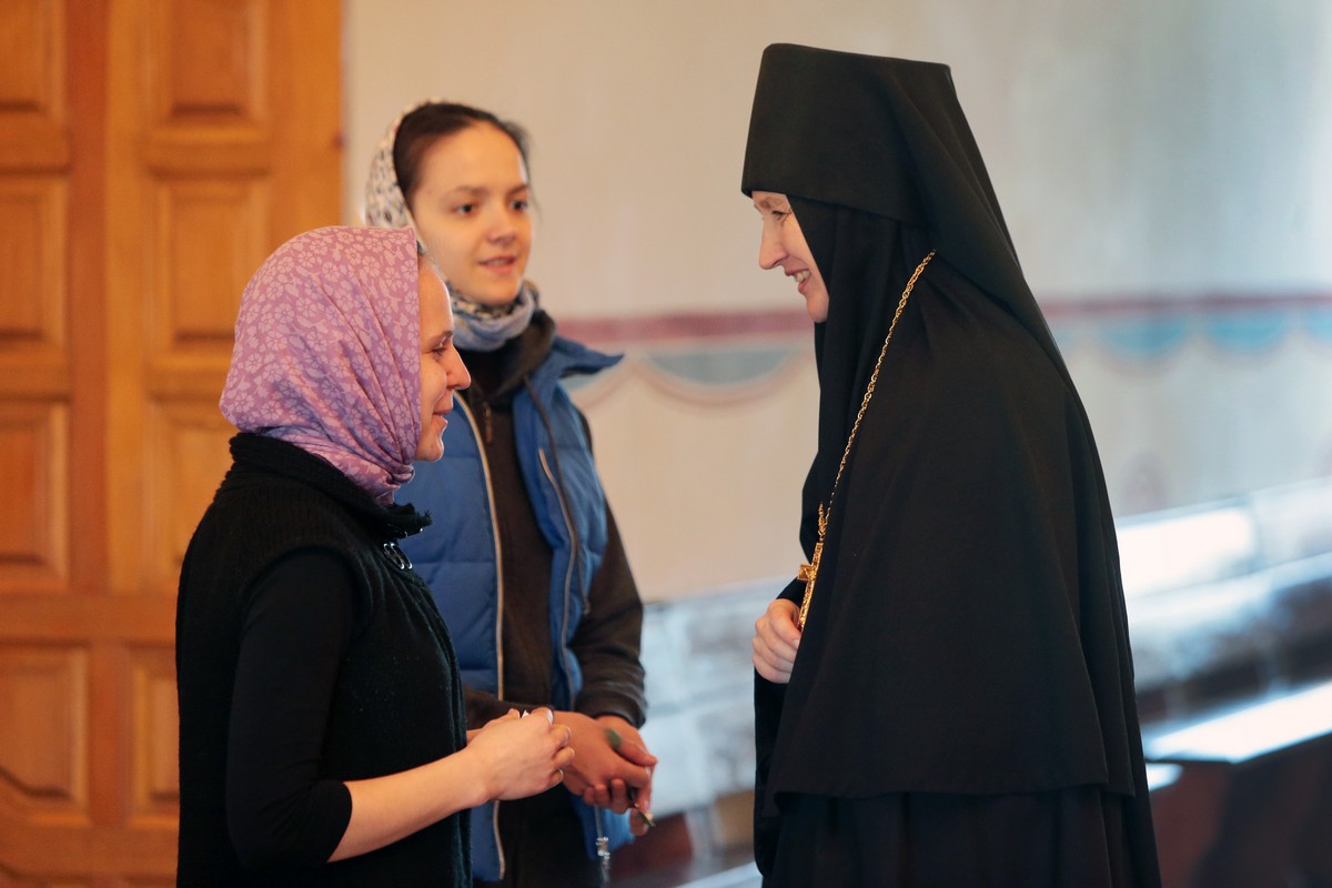 Именно живя в монастыре, многие из нас начинают воцерковляться, детство-то было далеко от Церкви, почти все пришли к вере уже в сознательном возрасте. Для того чтобы быть православным, надо знать, что такое Православие, что такое Церковь – для этого священники проводят с нами занятия по Катихизису, отвечают на все вопросы. Бывает, что Матушка благословляет кому-либо из сестер подготовить тему и выступить с «докладом». Так, недавно мы изучали вычисление Пасхалии – «вруцелето».