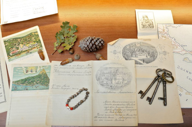 Среди экспонатов есть и такие музейные редкости, как массивные старинные ключи Русского Пантелеимонова монастыря, письма настоятеля, старинные открытки, почтовые бланки.