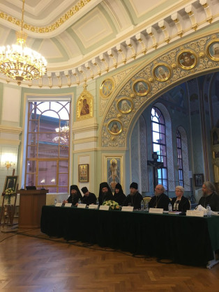 Перед конференцией протоиерей Владимир Воробьев, ректор ПСТГУ, в сослужении духовенства совершил заупокойную литию по игумену Серафиму. В своем приветственном слове к участникам форума пастырь подчеркнул, что здание Московского епархиального дома в Лиховом переулке возводилось митрополитом Киевским Владимиром (Богоявленским), возглавившим, как мы знаем, скорбный список Новомучеников и Исповедников Земли Русской в сане архиерея. И что принимавшая активное участие в московской церковной жизни Великая княгиня Елисавета Феодоровна откликнулась на призыв Владыки помочь в сборе средств. Затем вместе с мужем Великим князем Сергеем Александровичем Романовым она участвовала в торжествах по освящению Князь-Владимирского храма в Епархиальном доме. И спустя 90 лет после освящения здания и вскоре – храма, Архиерейский Собор Русской Православной Церкви в 1992 году причислил обоих к лику святых Русской Церкви – священномученика Владимира и преподобномученицу Великую княгиню Елизавету. «Не все святые канонизированы, но Господь знает их. У Господа они прославлены», – заключил отец Владимир.