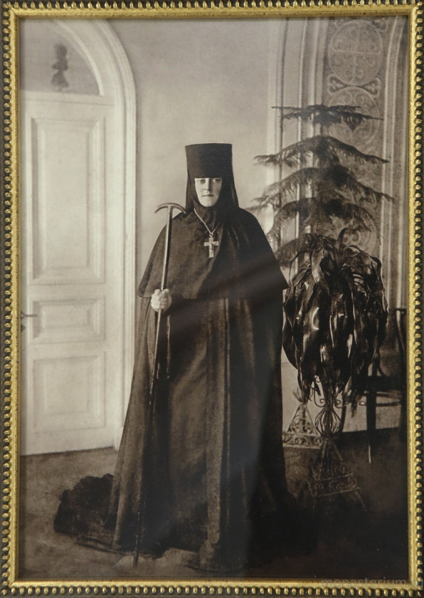 Монахиня Иоанна, чья фотография находится в этом же зале на другом стенде, пришла в монастырь по благословению Батюшки в 1903 году в довольно-таки зрелом возрасте. Причем она-то стремилась к монашеству давно, но ее купеческая семья, семья очень богатая, была категорически против. Родители хотя и имели много детей, все равно дочь в монастырь не отпускали – настаивали на том, чтобы она создала семью. Батюшка сумел повлиять на ситуацию. Родным сестрам будущей казначеи обители пастырь сказал: «Она вымолит весь ваш род». Усыпальницу, на которую было потрачено наследство купеческой дочки, ставшей монахиней, всю облицевали мрамором: и стены, и потолок. Изготовили очень красивый мраморный иконостас. В одной из газет сообщалось, что средства на строительство храма-усыпальницы дала одна петербургская благотворительница, пожелавшая остаться неизвестной. Но Батюшка знал «неизвестную». В то время он был совсем слабенький и, тем не менее, во время строительства приезжал сюда, смотрел место своего будущего погребения. Известно также, что он сказал монахине Иоанне: «Матушка, как ты мне тут место устроила, так  я тебе там устрою!» И она, единственная из монахинь Иоанновского монастыря, не была репрессирована. Другие прошли лагеря и ссылки (узнавали богоборцы, что кто-то из монашествующих находится в деревнях, забирали оттуда; кто-то из насельниц закрытой обители уехал в Белоруссию или на Украину – и там находили. В 32-м году – под каток всех...) А над матерью Иоанной словно какой-то невидимый покров был. По воспоминаниям, дошедшим до нас, к матери Иоанне – человеку тихому, мирному, имевшему удивительно кроткий характер, любили обращаться сестры. Она давала им такой совет: «Если совсем не знаете, как поступить в том или ином случае и спросить не у кого, напишите два варианта записочки: поступать так-то или не следует? Положите их за икону Матери Божией и молитесь. Потом доставайте одну из них». Так, говорила она, ее учил отец Иоанн Кронштадтский: молиться с верой Пресвятой Богородице и потом вытаскивать записочку.