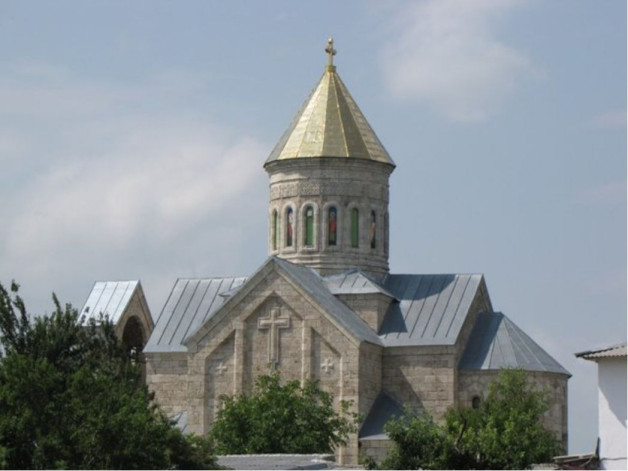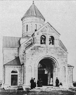 В 1895 году Хомякова на личные средства начала строительство храма в честь Святой Троицы, по проекту академика С.У. Соловьева. Образцом послужил древний грузинский храм XII века в Гелати. Храм был облицован белым камнем и украшен резьбой с монограммами Христа. Маленькой Мцхетой называли созданное заботами Екатерины Алексеевны чудо – уменьшенную копию известного собора древней грузинской столицы. Линии его архитектуры так органично вписываются в пейзаж предгорий Большого Кавказа…