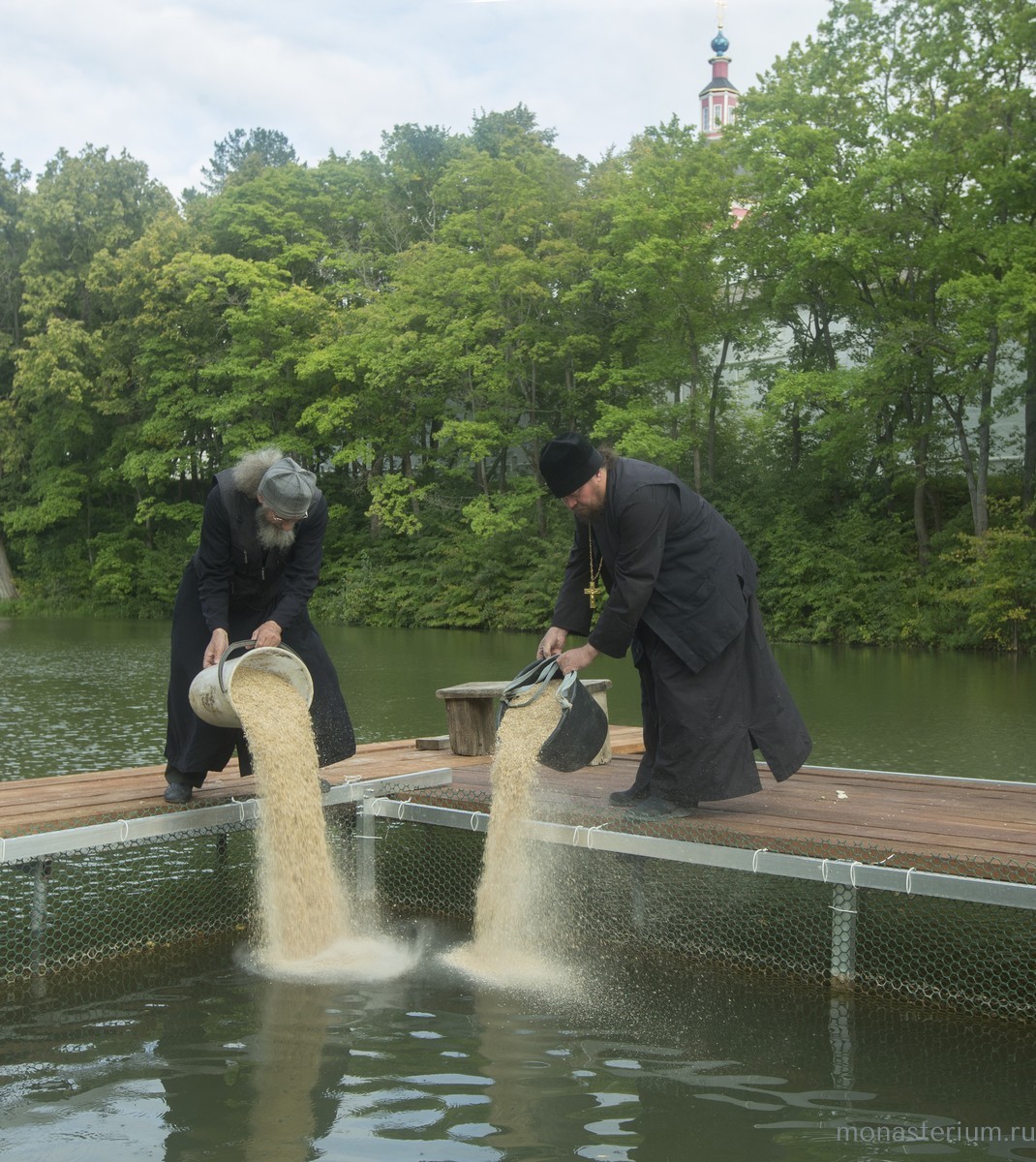 В этой связи хочется особо отметить один момент: помощь из монастыря идет большая. Обитель помогает продуктами епархии, духовной семинарии, духовному училищу. А многодетные семьи, которые живут поблизости и имеют хозяйство, чаще всего просят сено для своей живности, так что сено заготавливается и в расчете на них. На подсобном хозяйстве самого монастыря какой только живности не увидишь: коровы, поросята, куры, гуси! В больших искусственных прудах, вырытых более пяти столетий назад – только представьте, вручную! Глубиной в 11 метров! – выращивают карпа зеркального, карпа обычного, белого амура, карася, толстолобика. Еще зашла в пруды, сообщил отец-эконом, речная рыба: окунь, плотва, налим, лещ. Так что рыбное хозяйство требует специальных знаний и навыков. Батюшка вспомнил, что преподобный Пафнутий во время голода распорядился кормить в монастырской трапезной ежедневно до тысячи человек. И Господь помогал ему. Сейчас много паломников прибывает в выходные дни – их здесь кормят бесплатно. И православных туристов, совершающих путешествие по Золотому кольцу и заезжающих в монастырь. Нижняя трапезная открыта для богомольцев с самого утра до девяти вечера. Немало людей приезжает в дни постов, особенно Великого поста – пожить здесь какое-то время и помолиться. О них тоже заботу немалую проявляют. А уж на престольные праздники народу бывает! Братии одной не справиться, и тут подключаются сестры двух монастырей, которых направляют сюда настоятельницы ­– игумения Николая (Ильина) из Свято-Никольского Черноостровского женского монастыря в Малоярославце и игумения Анастасия (Мордмилович), настоятельница Казанского женского монастыря в Калуге и Спасо-Преображенского Воротынского женского монастыря. Кстати, продолжая тему помощи, исполняющий обязанности наместника монастыря иеромонах Пафнутий добавил к рассказу отца Аникиты такой факт: обитель никогда не отказывает в материальной помощи погорельцам и другим людям, оказавшимся в бедственном положении. «Это дело Божие, – сказал он. – Монастыри всегда помогали народу».