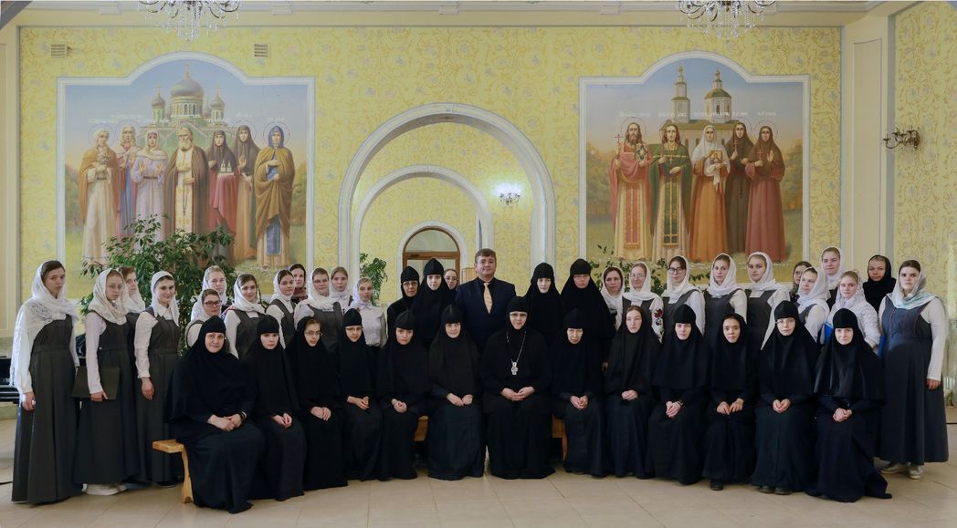 «В монастыре девочки проживают, здесь же они учатся. Учатся они бесплатно, на полном обеспечении монастыря. Питание обеспечиваем, форму шьем, и учебную, и концертную тоже, – рассказывает мать Паисия. – Практика хорового дирижирования проходит в храме. Есть череда, воспитанницы ходят на службы по очереди, а в воскресные, праздничные дни поют вместе с сестрами на два хора».