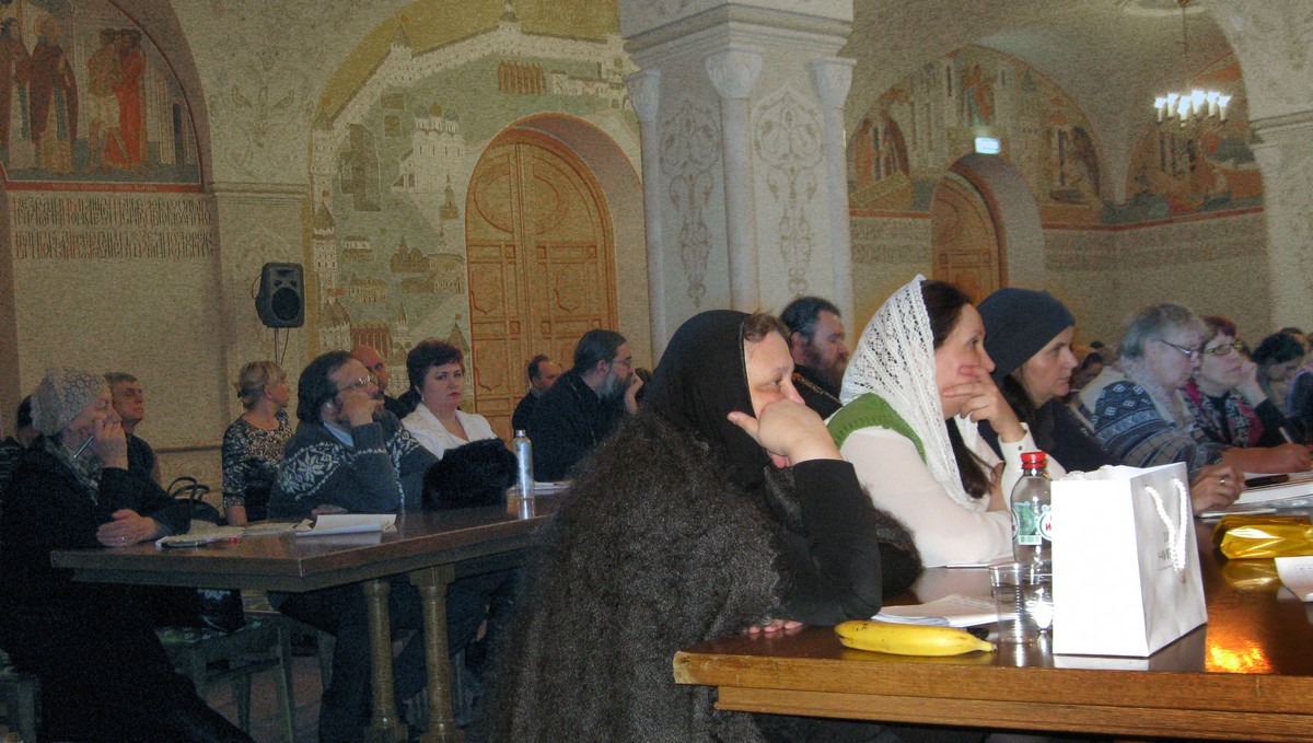 Не одному поколению наших современников выпала участь жить после той «операции». Во многих докладах рефреном звучала мысль: мученически ушедшие в небесные обители с именем Спасителя на устах спасают и нас, сегодняшних. Они вошли в вечность и стали за нас предстателями и молитвенниками. Аспирант Московского православного института святого Иоанна Богослова, специалист Синодального отдела религиозного образования и катехизации Е.Г. Балашова вспомнила, как известный швейцарский богослов и патролог, схиархимандрит Гавриил (Бунге) во время посещения Высоко-Петровского монастыря произнес в стенах московской обители: «Вы не представляете, каким богатством вы обладаете! Это сохранившаяся живая нить преемства!» Этому преемству и посвящается ставшая уже традиционной в рамках Международных Рождественских образовательных чтений конференция «Наследие святых отцов в жизни семьи и общества».
