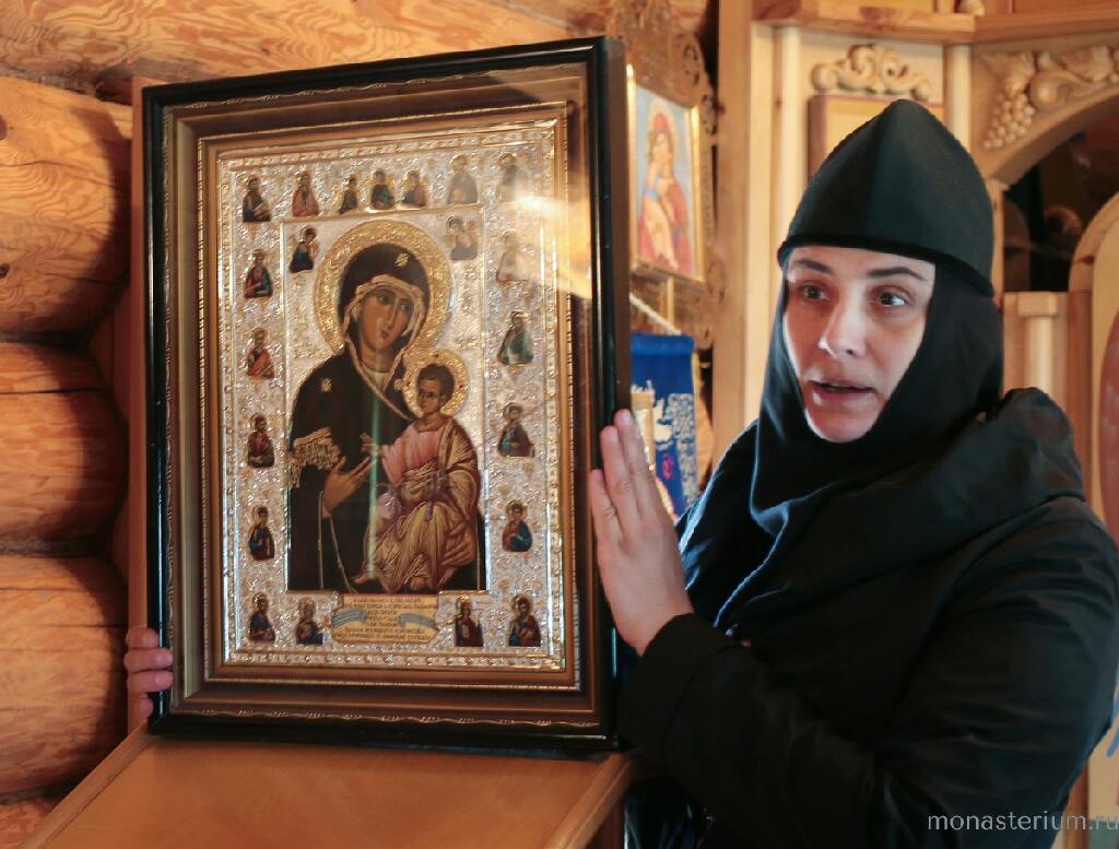 С матушкой-настоятельницей и благочинной монастыря монахиней Саломией (Кузьминой) мы направляемся в церковь Успения Пресвятой Богородицы. Этот небольшой уютный храм горячо любим сестрами и воспитанницами монастыря. С интересом и вполне понятным волнением слушаем истории двух чтимых икон, которые в нем находятся. Иверская икона Божией Матери, привезенная со Святой Горы Афон Святейшему Патриарху Алексию II, какое-то время висела над большой чудотворной иконой в Иверской часовне у Воскресенских ворот на Красной площади. А в 2005 году Его Святейшество благословил этим афонским образом сестричество при Патриаршем подворье храма святителя Николая Мирликийского в селе Шостье. Патриарх Алексий знал отца Петра и при встречах с ним всегда спрашивал: «Ну как там твои сестры в Рязани?» Летом 2002 года Святейший освящал в Касимове кафедральный Вознесенский собор. Сюда он не доехал, но спустя время подарил эту икону шостьенским сестрам и ее торжественно перенесли в монастырь. «На праздники, посвященные Иверской иконе Божией Матери, а их несколько в году, мы выносим ее в наш большой Никольский храм, находящийся в селе, чтобы все верующие могли к ней приложиться, – начала рассказ мать Саломия. – Были случаи чудотворений от этой иконы, и люди приносили драгоценные приношения, которые мы хотели было поместить в киот. Однако, поскольку он на это не рассчитан, мы собираемся в скором времени сделать с Божией помощью напольный резной киот, куда сможем поместить все эти знаки благодарности. Об одном чуде нам рассказала супружеская чета, отдыхавшая в санатории " Касимовские зори". В их семье сложилась тяжелая ситуация, связанная с детьми. Супруги приезжали в монастырь с экскурсией, а спустя время вернулись, чтобы поблагодарить Матерь Божию, перед Иверским образом Которой они помолились и Матерь Божия помогла их семье. Но это скорее как в евангельском сюжете: не десять ли очистились? А где же девять? Видимо, и здесь такая ситуация».
