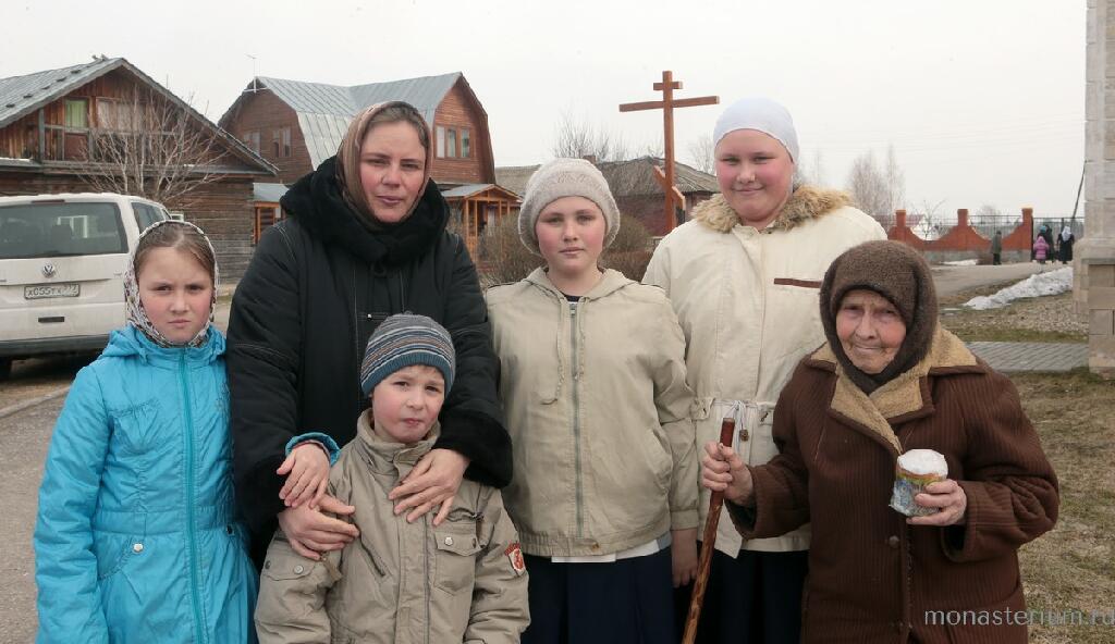 ...Вероника Бедлинская тоже вспомнила о благословении своего духовника – архимандрита Петра (Афанасьева) – рожать детей. Рожать несмотря ни на что! А этим «что», серьезной угрозой на пути к материнству, мог стать ее диагноз – двусторонний коксоартроз тазобедренных суставов. Но батюшкино благословение было сильнее опасений медиков. Исполнила семья и его благословение построить в Шостье уютный вместительный дом. Он был построен с нуля и по площади вышел как две трехкомнатные квартиры. Шла стройка, рождались дети. Правда, вначале супруги выбирались сюда из столицы время от времени, что называется, наездами. Отец Петр им говорил: «Мне дачники не нужны!» И в 2005 году они окончательно переселились в Шостье. Сегодня в семье растет пятеро детей. Старшему – 14 лет, он прислуживает в алтаре. Младшему в этом году будет пять... Возле дома разбит огород. Есть и домашнее хозяйство: гуси, куры, индюки. В достаточном количестве. «Мы с мужем любим землю, – сказала бывшая горожанка Вероника.– Но огород огородом, а меня сильно угнетало, что село напоминало пустыню без зелени. Так что решили: зелени мало – будем сажать сами. Ели сажали, собираемся боярышник и другие кустарники посадить. Вон сестры липовую аллею посадили, каштаны – это нас вдохновило!» Но все же основной темой нашего разговора, состоявшегося после службы в Никольском храме, были дети. Запомнились слова моей собеседницы: «Собственно, цель создания семьи какая? Дети. Иначе зачем тогда замуж выходить? Далее: если я не могу воспитать своих детей духовно, не в состоянии оберегать их от мирских соблазнов, уродующих душу, зачем надо было рожать? Часто бывает: родители в храм не ходят, дети – ходят. Пока маленькие ходят, что-то их привлекает. Затем вырастают и забывают дорогу в храм. К нам приезжала катехизатор, она говорила: вера в том случае внутри зародится и окрепнет, когда с нею живут постоянно – и дома, и в семье, и вокруг. Мы, "монастырские" переселенцы, объединились вокруг обители. Что касается своего дома, своей семьи, то я приложу максимум усилий, чтобы на Суде Божием можно было сказать: "Господи, я сделала всё, что было в моих силах! "» Вероника, сильная по натуре личность, прекрасно осознает, что жизнь рядом с обителью, жизнь горожан в селе – это огромная духовная работа и ответственность. Она с мужем к этому готова. Для иных же планка оказалась слишком высока, люди уезжали. Находились вроде бы уважительные внешние причины для отъезда, хотя внутренние – на чаше весов выбора – наверняка были куда весомее...