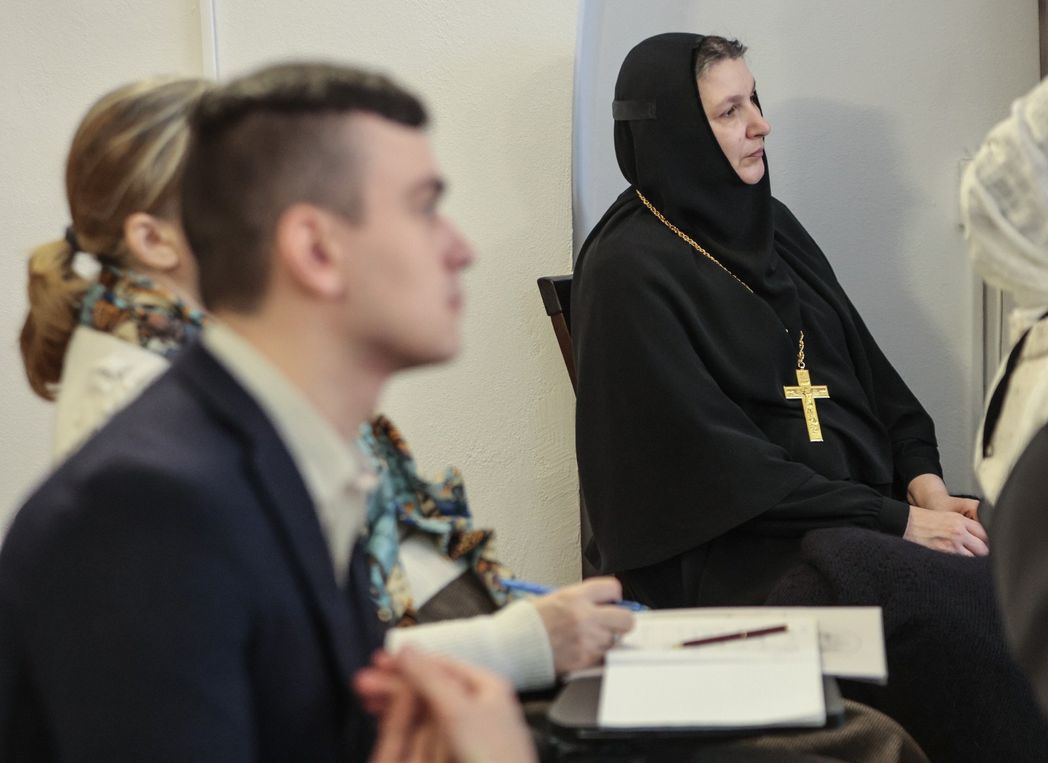 Нынешнее научное собрание, названное «История Московского Ивановского монастыря: строители и ктиторы», объединило в небольшом конференц-зале (он находится в подклете Иоанно-Предтеченского собора, рядом с музейной экспозицией) историков, археологов и искусствоведов, архитекторов, реставраторов, филологов, а также насельниц монастыря, приобретших за годы исследовательских трудов уникальный опыт и профессионализм. По традиции открыла заседание казначея обители монахиня Анувия (Виноградова).