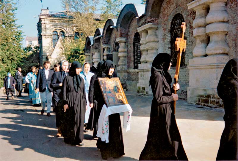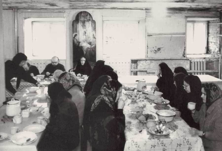 Территория монастыря напоминала проходной двор. Здания в большинстве своем находились в аварийном состоянии. Главный собор уже действовал как приходской храм, но его фундамент разрушался и ему грозило полное уничтожение. Самым же трудным было преодолеть недоброжелательное отношение людей и противостоять врагу рода человеческого, не желающего никому добра и спасения. Обстановка была сложная, но все же в монастырских стенах ощущалось нечто такое, что трудно выразить словами. Это был какой-то особый духовный мир, где чувствовалась молитва предшественников и наших наставников. Их молитва побеждала ненавистную рознь мира сего.