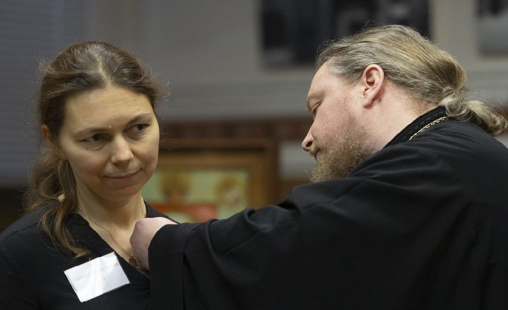 Уже не первый год на Златоустовские чтения с их серьезно расширяющимся кругом докладчиков и географией приезжают из других городов России, а также из-за границы потомки Ф.М. Апраксина. Думается, в этот раз всем им приятно было услышать, что по инициативе отца Федора и его помощников появился памятный знак-награда. Это копия боевого ордена, который был спроектирован и отлит по приказу Петра I в честь победы в Гангутском сражении, показавшем, что родилась еще одна морская держава, с которой придется считаться. А творцом победы русского флота у Гангута стал генерал-адмирал, граф Ф. М. Апраксин. «Смеем надеяться, что мы имеем право награждать такой наградой тех, кто услышал зов Божий и сердечно, со всей душой включился в эту работу», – сказал батюшка, приступая к церемонии награждения. Среди награжденных – секретарь Центра изучения истории и наследия Златоустовского монастыря Анастасия Хондзинская, чей вклад по возвращению в пространство Москвы памяти о древней обители весом.