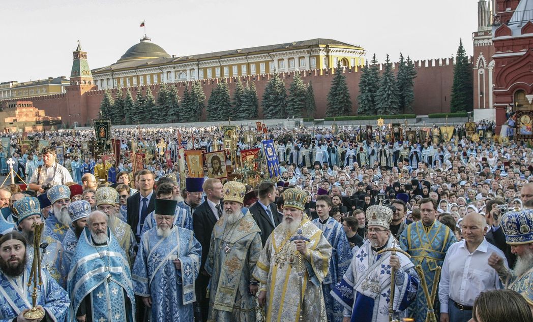 Начинается вечерняя служба. Благодаря радиотрансляции всё, что происходит внутри храма, можно слышать далеко окрест. И площадь перед храмом, заполненная священнослужителями приходов столицы и мирянами, то благоговейно замолкает, то подхватывает слова молитв.