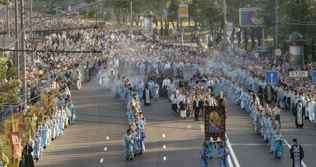 Сначала крестный ход направляется вокруг Храма Христа Спасителя. Затем идет по Кремлевской набережной к Красной площади. Параллельно с Москвой-рекой возникает и движется еще один живой стремительный поток.
