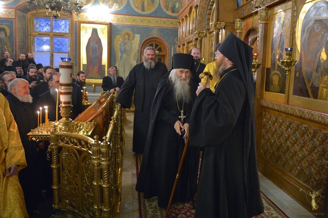 После знакомства с новым наместником, воодушевленные продолжительной беседой, участники «Оптинского лектория» пожелали владыке Иосифу помощи Божией в управлении этим древним монастырем с глубокими традициями старчества, которое, как мы знаем, стало поистине феноменальным духовным явлением в жизни России, начиная с первой половины XIX века. Добавим: и где во второй половине XIX века и в начале XX столетия подвизался преподобный Иосиф Оптинский, в честь которого епископ Можайский Иосиф был пострижен в монашество в Свято-Пафнутьевом Боровском монастыре. На протяжении тридцати лет старец Иосиф (Литовкин) являлся келейником преподобного Амвросия Оптинского, его «правой рукой». Кроткий молитвенник-прозорливец он удостоился неоднократного посещения Царицы Небесной, и Божия Матерь называла его «любимче мой». Служить на месте подвижнических трудов своего Небесного покровителя! Вероятно, осознание этого помогло епископу Иосифу приступить к столь ответственному послушанию не только с душевным трепетом, но и с глубокой надеждой, что преподобный Иосиф Оптинский, взирая на его труды, видя его устремления, не оставит его.