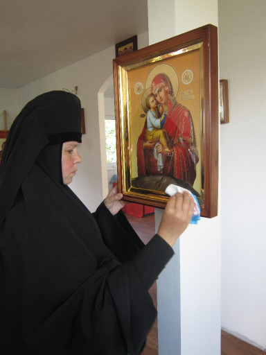 Пока в обители мало насельниц, настоятельница монахиня Илария старается ограничивать деятельность монастыря самыми необходимыми работами. Сестры несут послушания в церкви, на клиросе, на кухне, в трапезной, исполняют различные хозяйственные работы, пишут статьи для монастырского сайта. Весной и летом к этим работам добавляется сад и огород. Выполняя послушания, сестры стараются помнить слова отца Ефрема Ватопедского, сказанные им в беседе с насельницами Полоцкого Спасо-Евфросиниевского монастыря: «Я не пришла в монастырь, чтобы стать секретарем, не пришла, чтобы стать трапезарем, не пришла, чтобы стать поваром, ни чтобы в гостинице служить. Я здесь для того, чтобы стать монахиней. Я пришла сюда, чтобы полюбить Бога». Именно поэтому с каждой сестрой, которая захочет остаться в монастыре, Матушка настоятельница предварительно беседует, раскрывая, в чем состоит ежедневный внутренний труд монаха. Также по воскресным дням Матушка проводит общие беседы о монашеской жизни с сестрами. Каждая сестра имеет возможность в любое время обратиться к Матушке со своими личными вопросами и недоумениями.