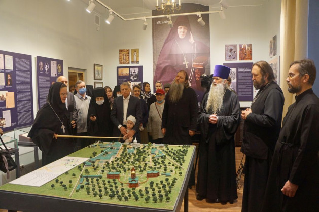 На представленных в экспозиции стендах и витринах кропотливо собраны все эти указы, исторические виды монастырей, планы их реконструкции. Вступив в управление Алексеевским монастырем в феврале 1871 года, новоназначенная игумения уже в мае того же года, в праздник Святого Духа, в присутствии преосвященного Леонида совершает закладку большого двухэтажного корпуса, а 21-го ноября он уже был освящен митрополитом Иннокентием. Это первое здание, возведенное игуменией Антонией, должно было послужить началом общежития, принципы которого и вводила матушка в обители. В нижнем этаже постройки были устроены кухня и общая трапеза для монашествующих, а в верхнем – мастерские: золотошвейная, живописная и переплетная.
