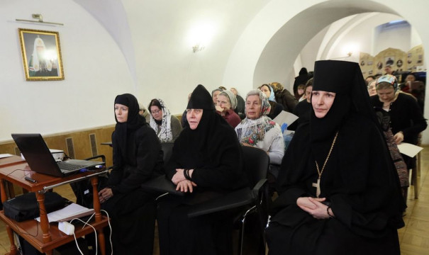 В заключение Светлана Зотова и Светлана Сергеева, члены Досифеевской группы, познакомили участников конференции с отчетом о поэтапной деятельности на тех направлениях, которые были избраны энтузиастами. Они рассказали о находках, что сподвигли определенный круг людей к дальнейшей исследовательской работе, соединившей мирян и сестер обители – монахиню Тавифу (Исаеву) и монахиню Анувию (Виноградову). (Их вдохновляющую и координирующую роль миряне чувствуют постоянно). Теме сбора материалов для подготовки к канонизации известной подвижницы благочестия был посвящен небольшой слайд-фильм, сделанный с такой любовью и на таком хорошем профессиональном уровне, что хочется низко поклониться его создателям. Одна картинка с краткой информацией сменяет другую: заседания рабочих групп в монастыре и работа в разных архивах; панихиды по матушке Досифее в Новоспасском монастыре и поездки в места, связанные с сестрами-предшественницами обители на Китай-городе. Образно говоря, в фильме проложены маршруты духовной географии. А особую атмосферу при его просмотре создает музыка ирландско-норвежского дуэта Secret Garden, навевающая мысли о вечности.